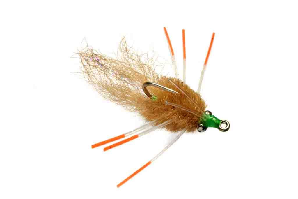 Sur les flats tropicaux, il arrive souvent que les Bonefishs et les Permits se nourrissent dans des zones de très faible profondeur , parfois dans moins de 20 cm d'eau. Dans ces conditions, l'impact d'une mouche plombée classique effraie instantanément le poisson. La Beadchain Crab Tan de Fulling Mill est la réponse technique à cette situation délicate.