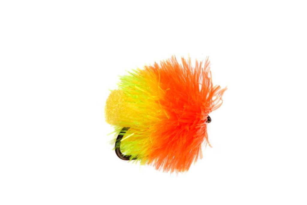 Le coloris "Tequila" est un mélange explosif de jaune, d'orange et de sunburst. Cette combinaison "Feu" est reconnue mondialement pour sa capacité à déclencher l'agressivité des poissons, même les jours où ils ne se nourrissent pas. C'est une mouche d'agression pure qui joue sur l'instinct territorial et la curiosité des truites de réservoir.